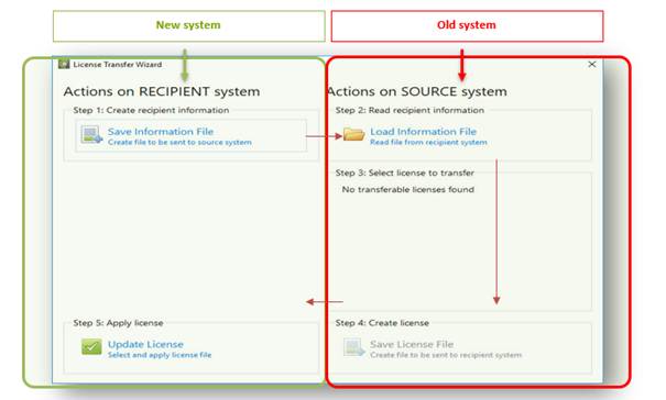 NOTE: the current license will no longer work on the (old) computer when this operation has been performed The license transfer is now complete and transferred from the old to the new system.